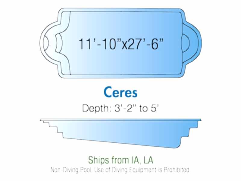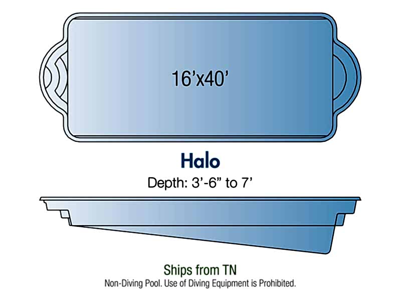 Pool dimensions: shallow end 3'6", deep end 6', width 14', length 32', 12000 gallons.